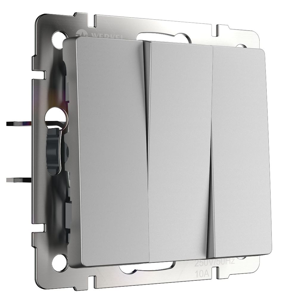 Выключатель трехклавишный встраиваемый Werkel Cеребряный W1130006